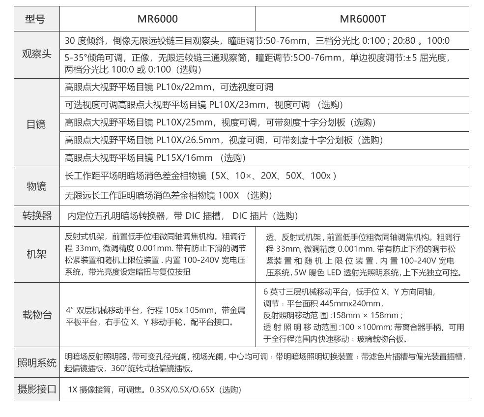 MR6000各项操作根据人机工程学设计,最大限度减轻操作者的使用疲劳。其模块化的部件设计,可对系统功能进行自由组合。涵盖明场、暗场、斜照明、偏光、DIC微分干涉等多种观察功能,可根据实际应用,进行功能选择。