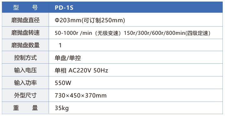 PD系列无极变速四档定速磨抛机,适用于对金相试样进行粗磨、精磨和抛光操作。本机采用微处理器控制系统,无极转速控制50-1000转/每分钟,以及150/300/600/800/转定速控制,具有更高效的对金相试样进行粗磨、精磨和抛光操作,适合各类型金相试样的制作。