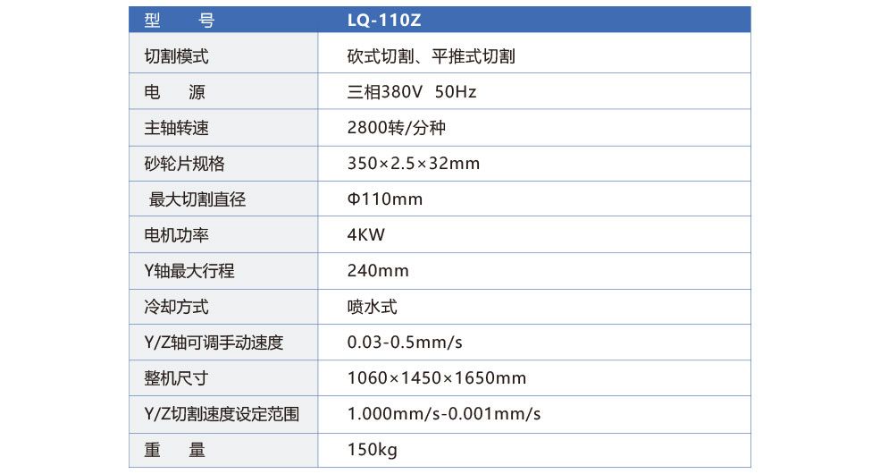 本机适用于切割各种金属、非金属材料的试样,以便观察材料金相、岩相组织。本机带有循环冷却装置,使用配置好的冷却液可带走切割时所产生的热量,避免试样过热而烧伤试样组织。该机使用方便、安全可靠。是工厂、科研单位以及大专院校实验室制作试样必备的设备之一。