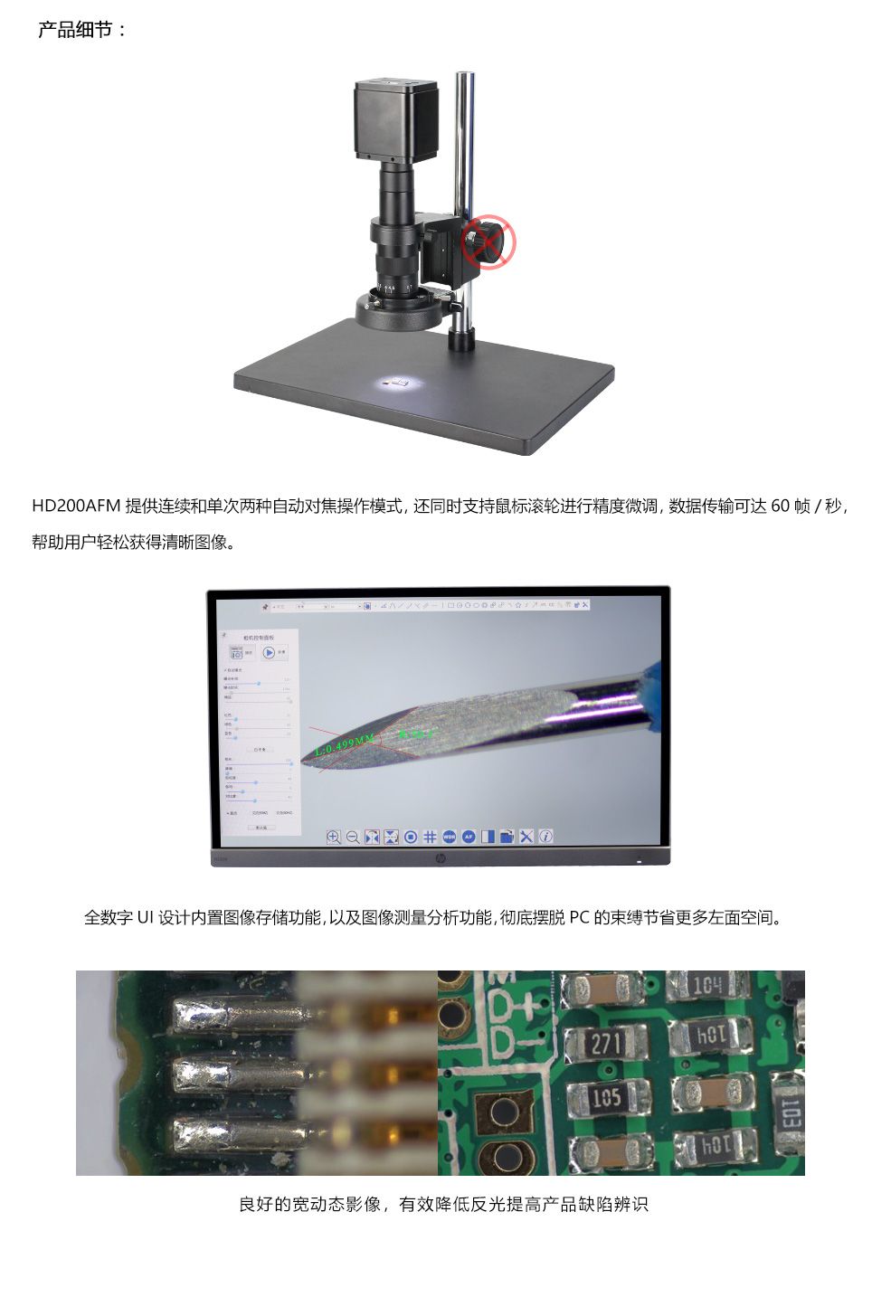 HD200AFM系列自动对焦电子游戏,采用索尼1/2英寸星光级 CMOS传感器,利用双层降噪技术,让你拥有超高的灵敏度以及超低噪声的1080P高清画质。自动对焦追踪功能,在调整倍率的同时可实现快速自动对焦,全数字UI设计带图像存储、测量分析功能以及鼠标操作菜单等功能,在不断提升用户体验同时极大的提高了工作效率。
