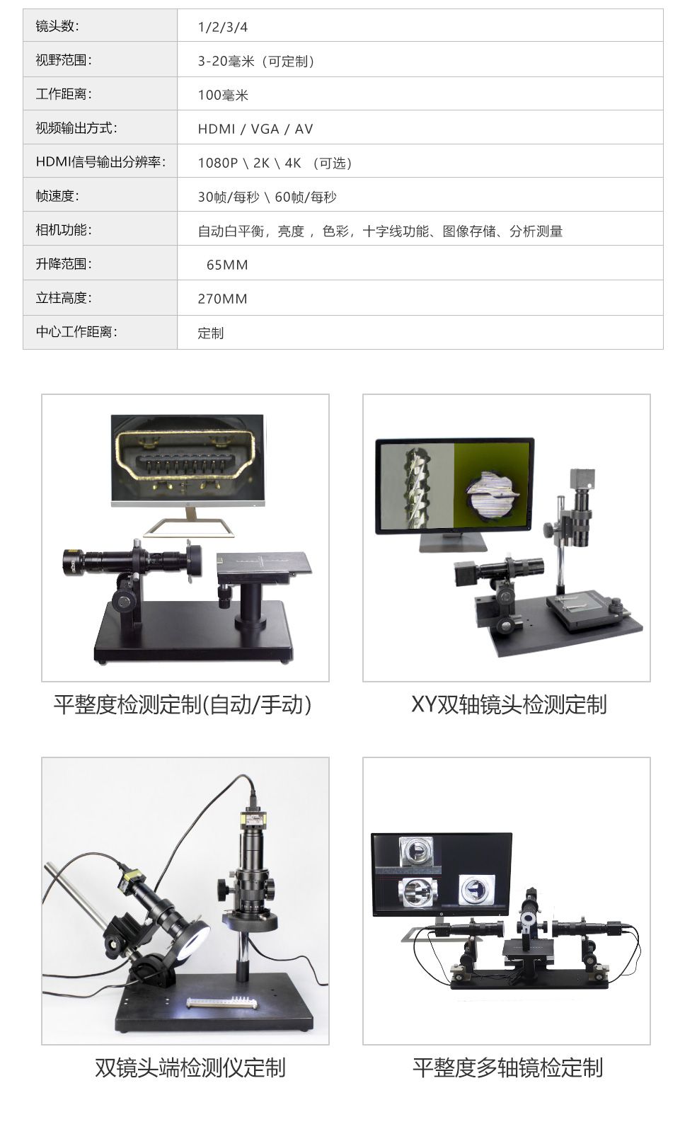 多轴镜检系统,可应用于各类精密五金接插件引脚的平整度,孔距,间距,角度,尺寸检测以及精密电子部品缺陷检测设备,可根据用户检测的项目内容定制开发检测软件以及多镜头应用检测方案
